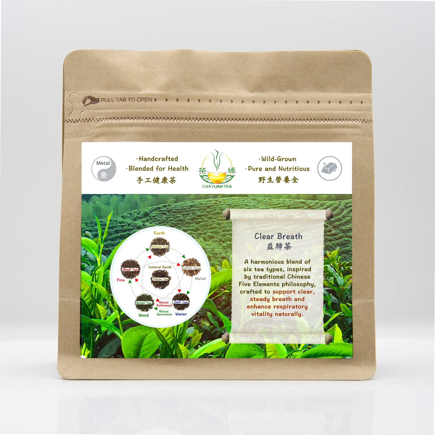 A harmonious blend of six tea types, inspired by traditional Chinese Five Elements philosophy, crafted to support clear, steady breath and enhance respiratory vitality naturally.